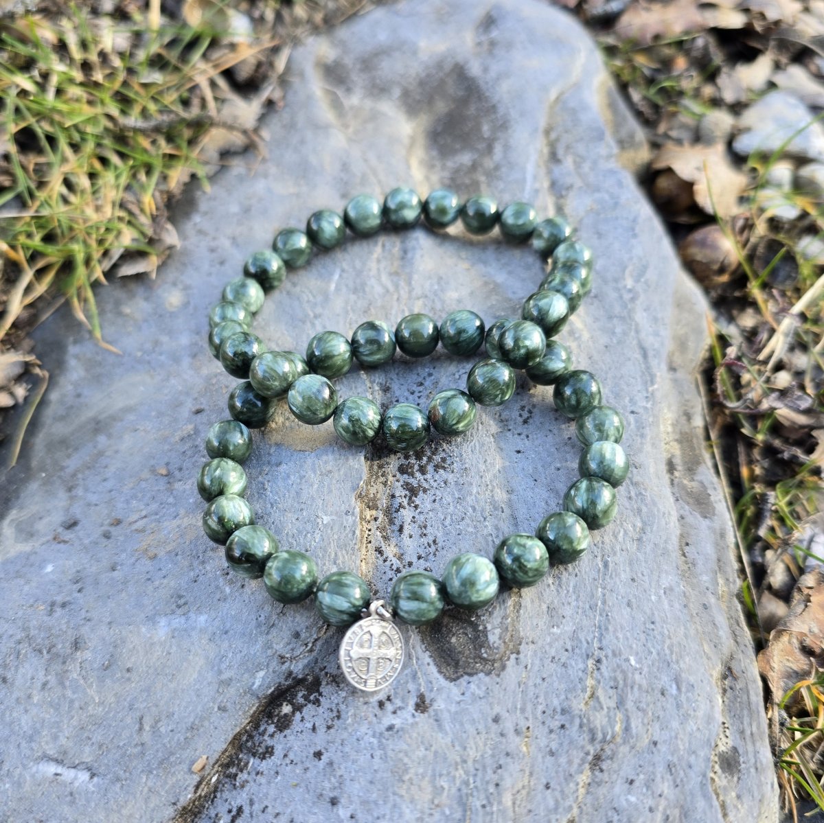 La Séraphinite, à puissante vibrations énergétiques, est considérée comme un excellent accompagnateur spirituel durant les séances de méditation car elle aiderait à l'ouverture des chakras et serait en lien avec les anges, facilitant la connexion avec le royaume angélique.